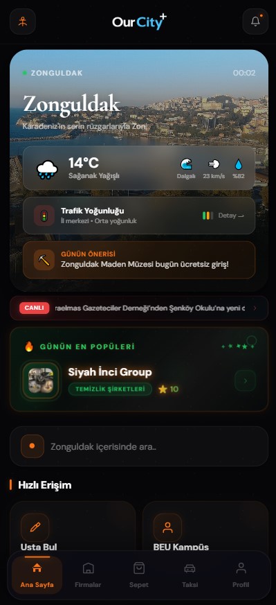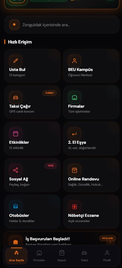 Firmalar, ustalar, taksiler, haberler, etkinlikler — şehrinizin tüm hizmetleri tek platformda. Her şehir için özelleştirilmiş.