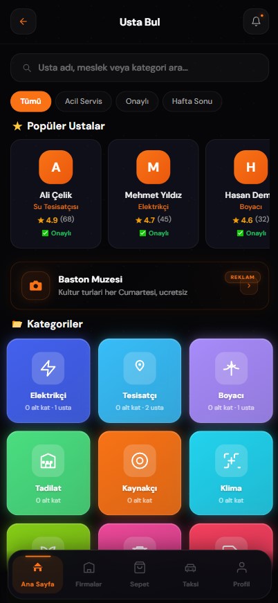 Firmalar, ustalar, taksiler, haberler, etkinlikler — şehrinizin tüm hizmetleri tek platformda. Her şehir için özelleştirilmiş.