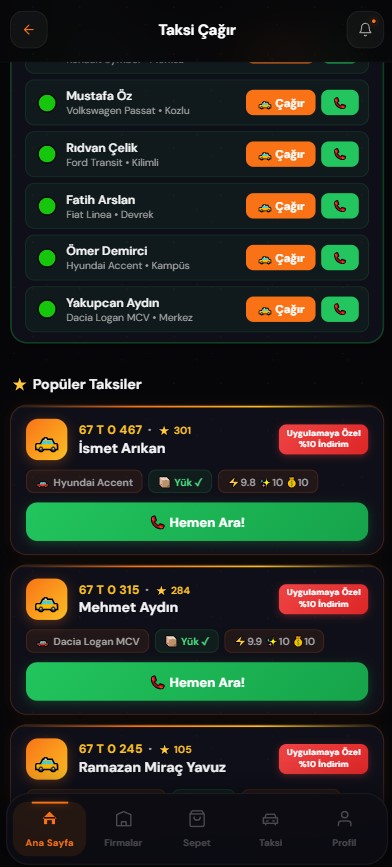 Yöneticiler, firmalar, taksiciler ve randevucular için profesyonel arayüzler